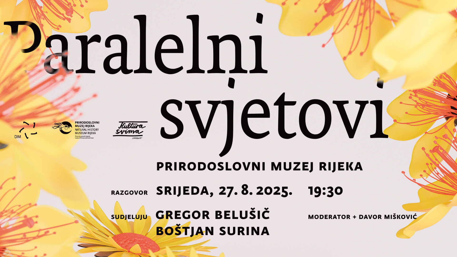 Pridružite nam se u Botaničkom vrtu Prirodoslovnog muzeja Rijeka, u srijedu, 27. kolovoza 2025., s početkom u 19.30 sati na razgovoru povodom izložbe Paralelni svjetovi (panoi na Korzu, 19. kolovoza – 2. rujna) na kojoj su prikazane ilustracije biljaka na način kako ih vidi ljudsko oko i percepcija tih istih biljaka iz pogleda kukaca. Kroz odnose cvjetnica i njihovih oprašivača, izložba nastoji pojasniti kako osjetila stvaraju različite istine i kako zahvaljujući različitim mogućnostima osjetila i poimanja svijeta oko sebe, živimo u paralelnim svjetovima.