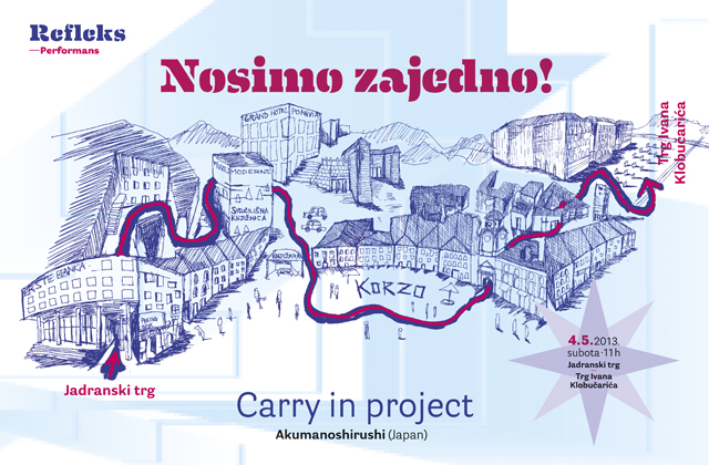 Pozivamo vas da dođete u subotu 4. 05. na Jadranski trg da “Zajedno nosimo!”objekt nastao kao dio performansa Carry-in-projekta japanske umjetničke grupe Akumanoshirushi.